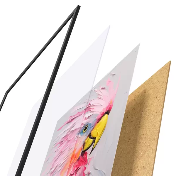 Il poster è composto da cornice, plexiglass, immagine stampata e supporto in truciolato. Il poster può essere immediatamente appeso alla parete grazie ai supporti sul retro.
