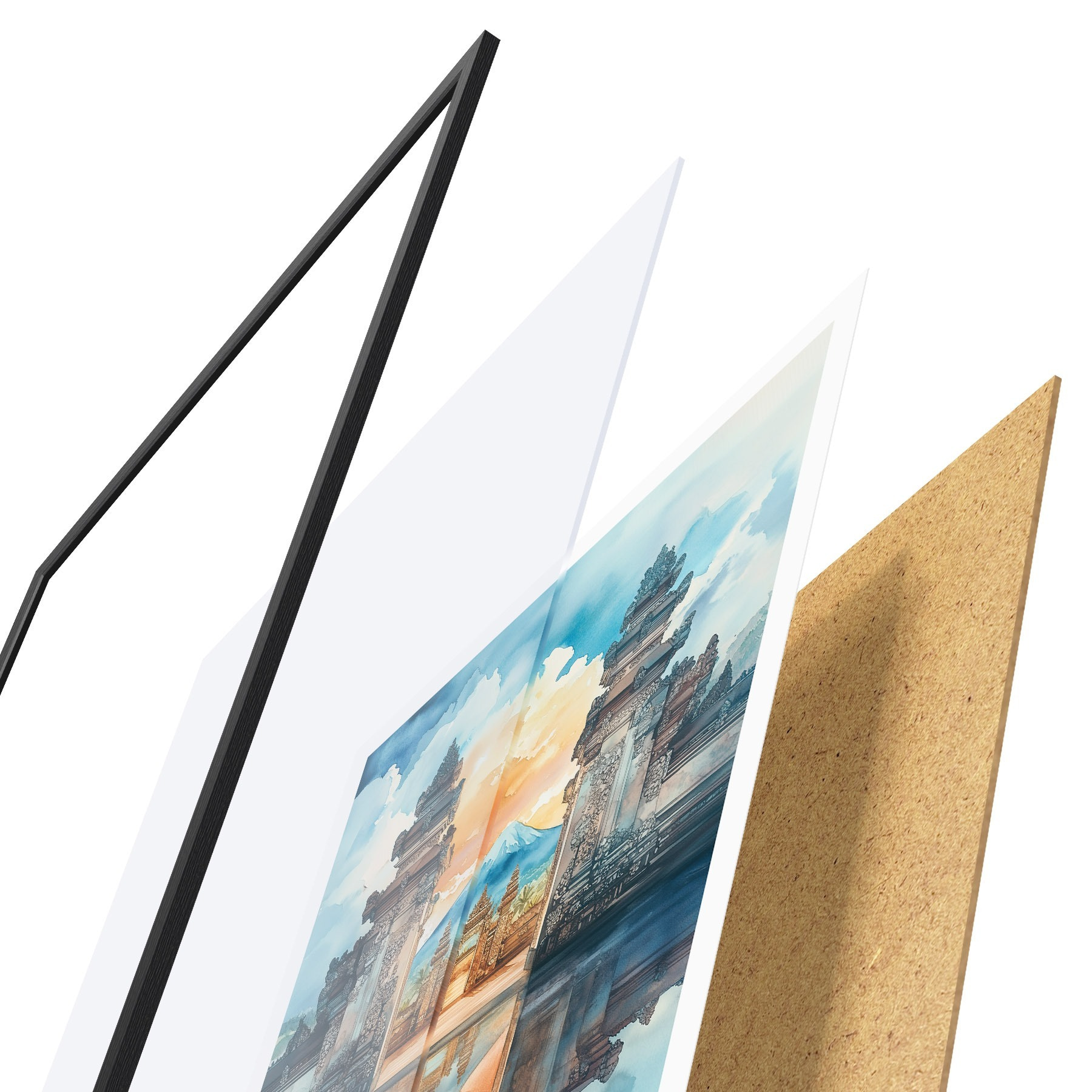Il poster è composto da cornice, plexiglass, immagine stampata e supporto in truciolato. Il poster può essere immediatamente appeso alla parete grazie ai supporti sul retro.