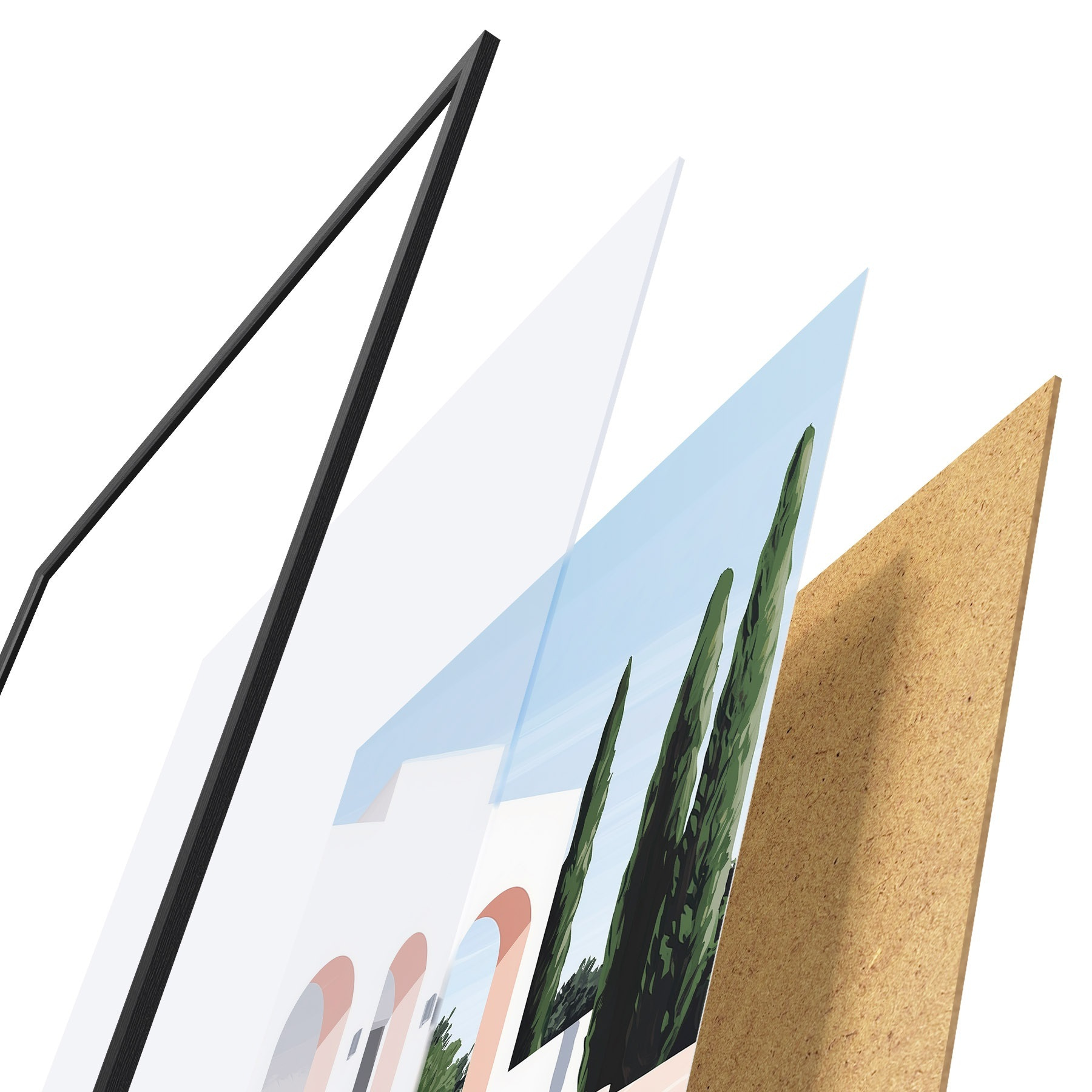 Il poster è composto da cornice, plexiglass, immagine stampata e supporto in truciolato. Il poster può essere immediatamente appeso alla parete grazie ai supporti sul retro.
