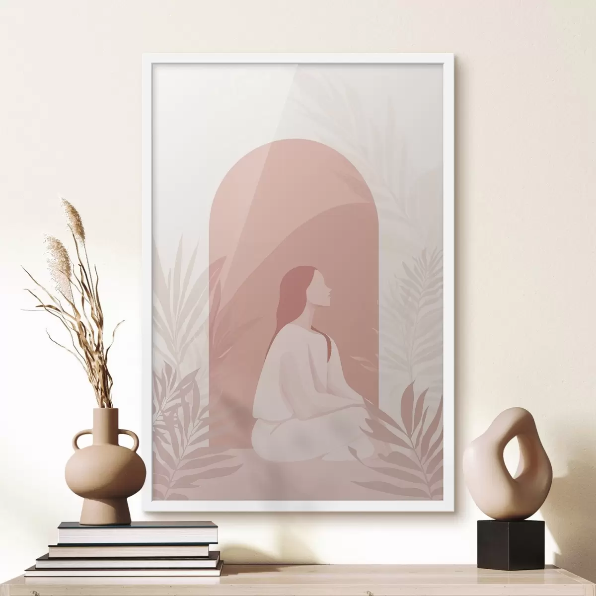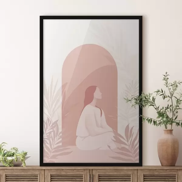 Poster Donna in meditazione, stile piatto, piante tropicali, colori rosa Nr f44154