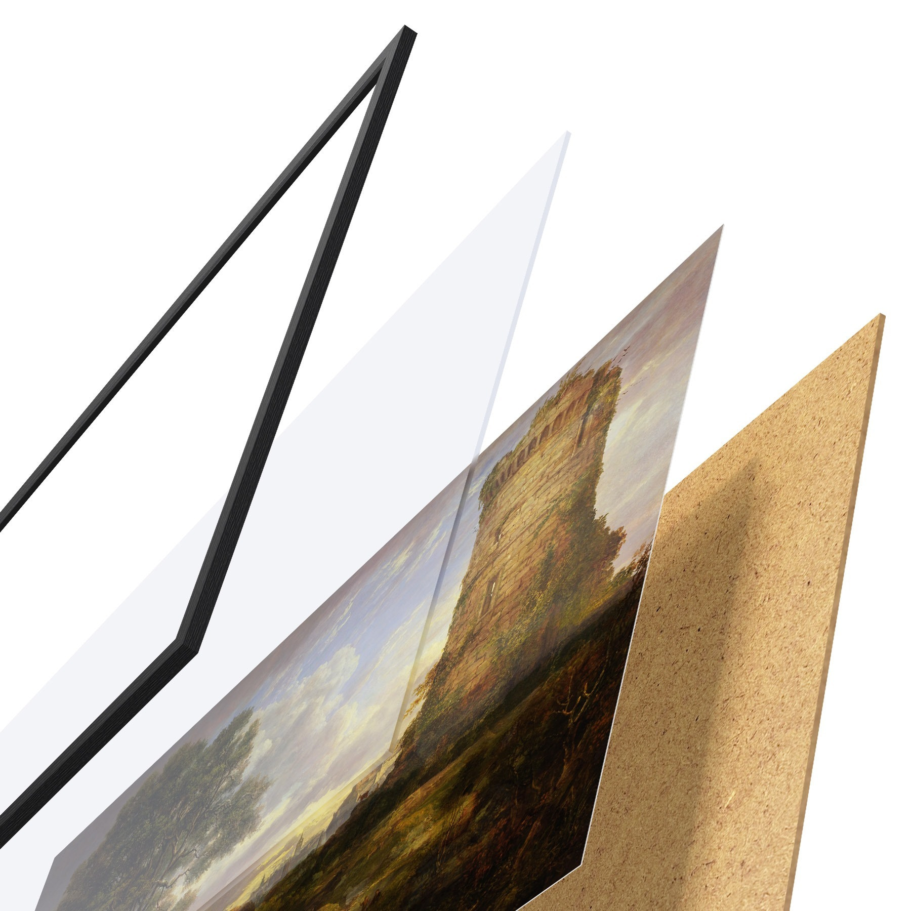 Il poster è composto da cornice, plexiglass, immagine stampata e supporto in truciolato. Il poster può essere immediatamente appeso alla parete grazie ai supporti sul retro.
