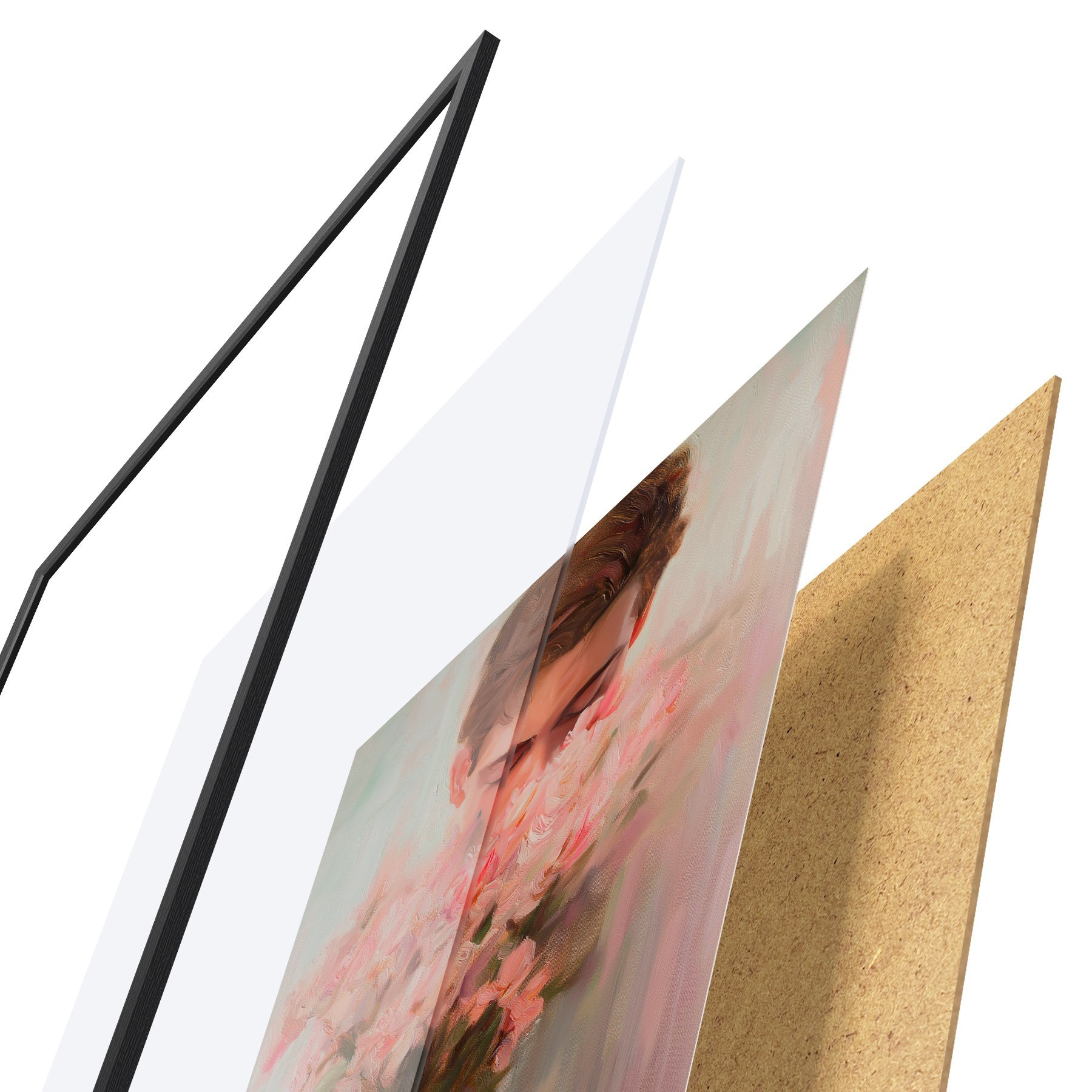 Il poster è composto da cornice, plexiglass, immagine stampata e supporto in truciolato. Il poster può essere immediatamente appeso alla parete grazie ai supporti sul retro.
