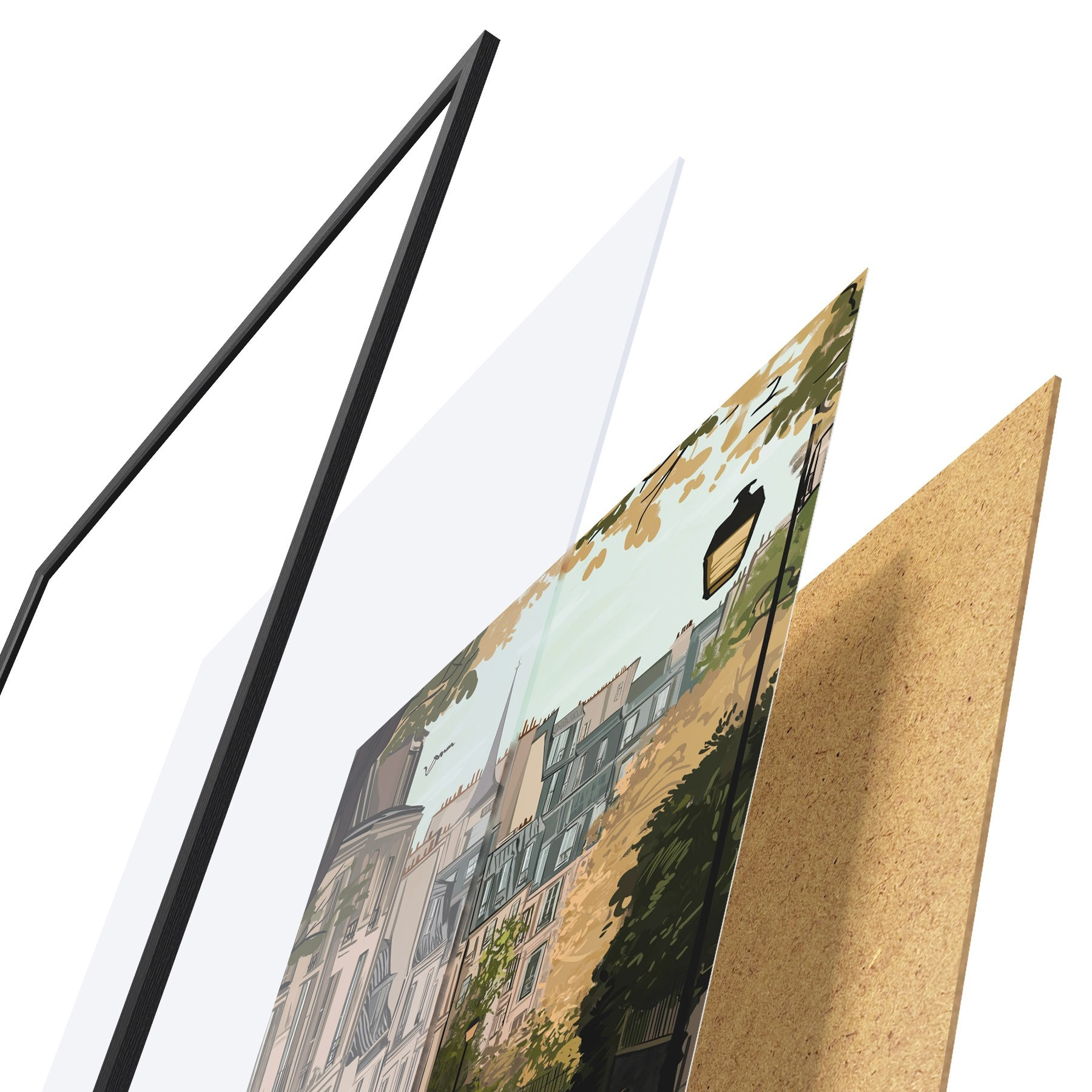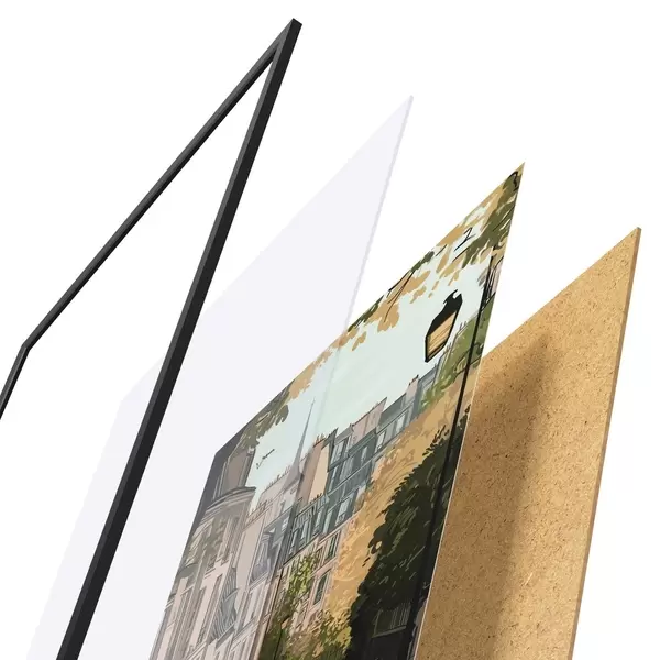 Il poster è composto da cornice, plexiglass, immagine stampata e supporto in truciolato. Il poster può essere immediatamente appeso alla parete grazie ai supporti sul retro.