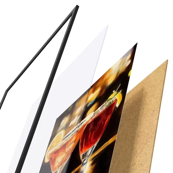 Il poster è composto da cornice, plexiglass, immagine stampata e supporto in truciolato. Il poster può essere immediatamente appeso alla parete grazie ai supporti sul retro.