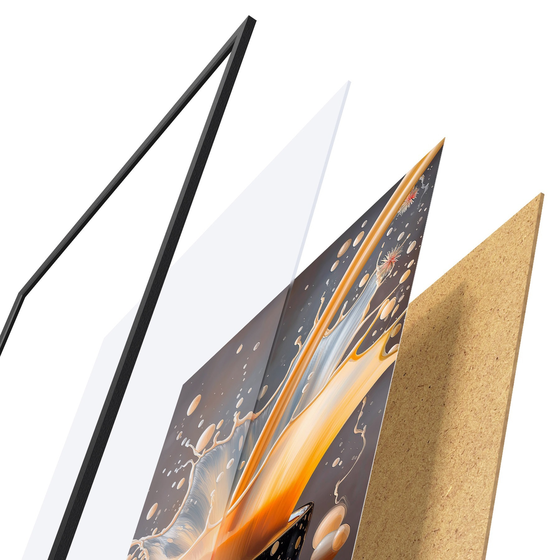 Il poster è composto da cornice, plexiglass, immagine stampata e supporto in truciolato. Il poster può essere immediatamente appeso alla parete grazie ai supporti sul retro.