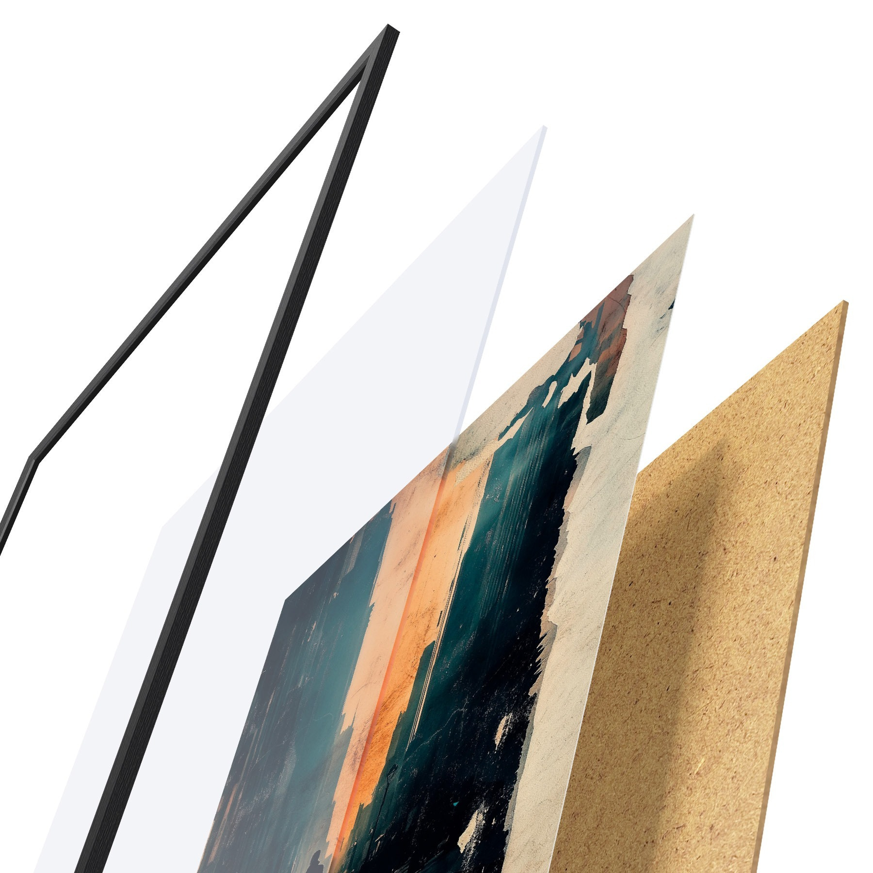 Il poster è composto da cornice, plexiglass, immagine stampata e supporto in truciolato. Il poster può essere immediatamente appeso alla parete grazie ai supporti sul retro.