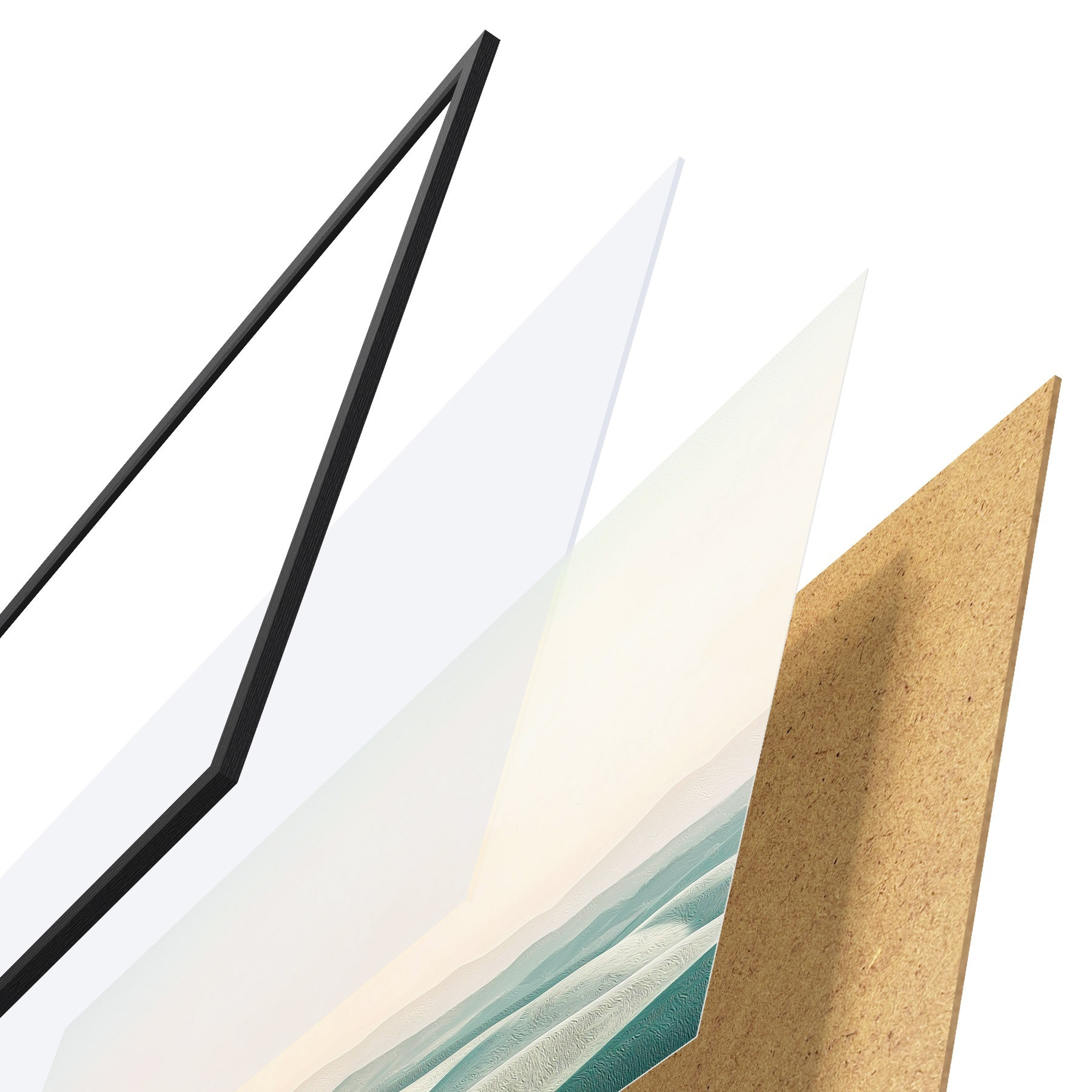 Il poster è composto da cornice, plexiglass, immagine stampata e supporto in truciolato. Il poster può essere immediatamente appeso alla parete grazie ai supporti sul retro.