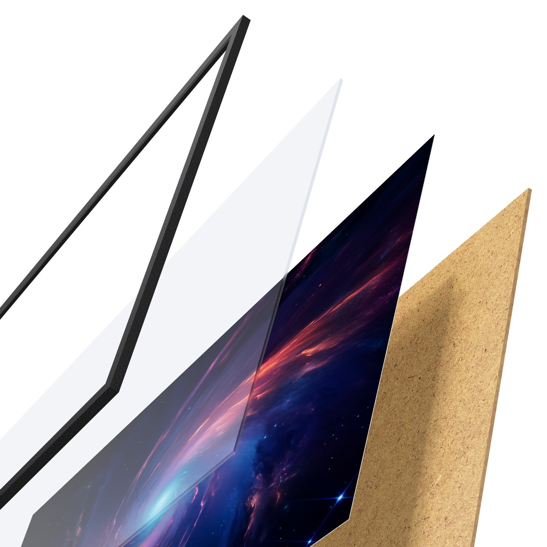 Il poster è composto da cornice, plexiglass, immagine stampata e supporto in truciolato. Il poster può essere immediatamente appeso alla parete grazie ai supporti sul retro.