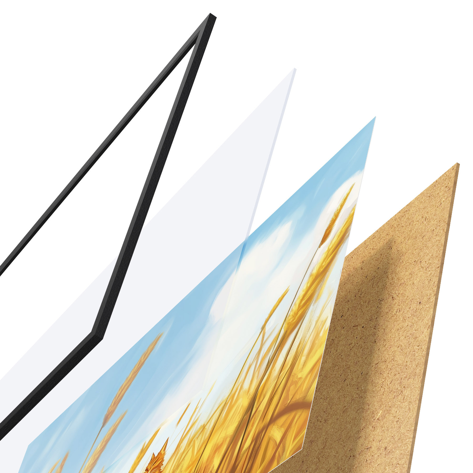 Il poster è composto da cornice, plexiglass, immagine stampata e supporto in truciolato. Il poster può essere immediatamente appeso alla parete grazie ai supporti sul retro.