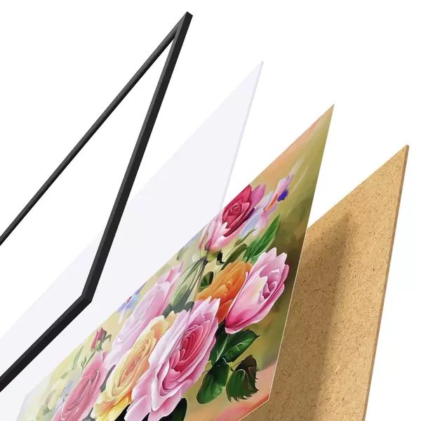 Il poster è composto da cornice, plexiglass, immagine stampata e supporto in truciolato. Il poster può essere immediatamente appeso alla parete grazie ai supporti sul retro.