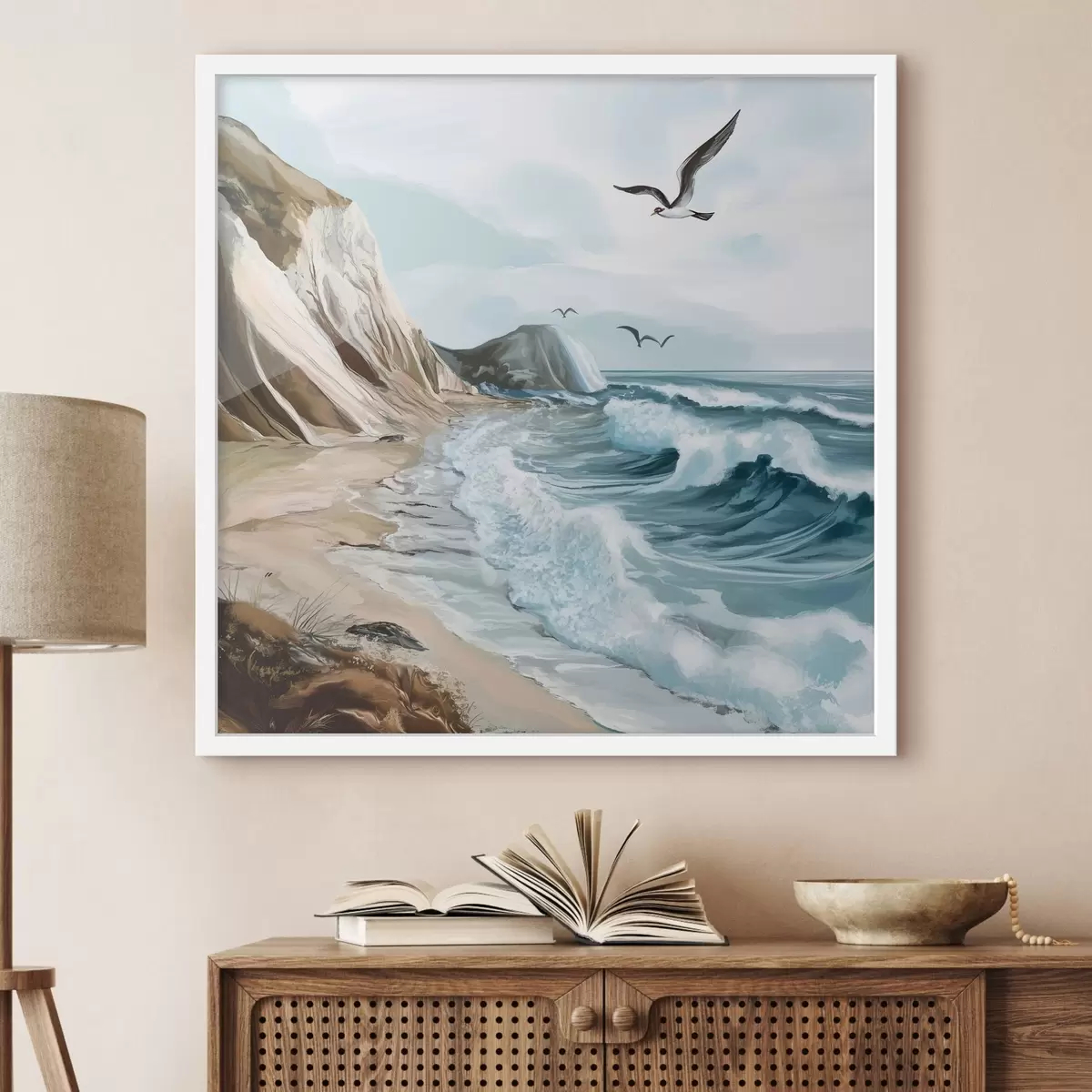 Poster Spiaggia sabbiosa e uccelli Nr f44222