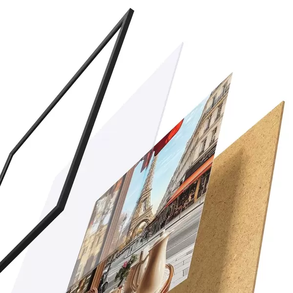 Il poster è composto da cornice, plexiglass, immagine stampata e supporto in truciolato. Il poster può essere immediatamente appeso alla parete grazie ai supporti sul retro.