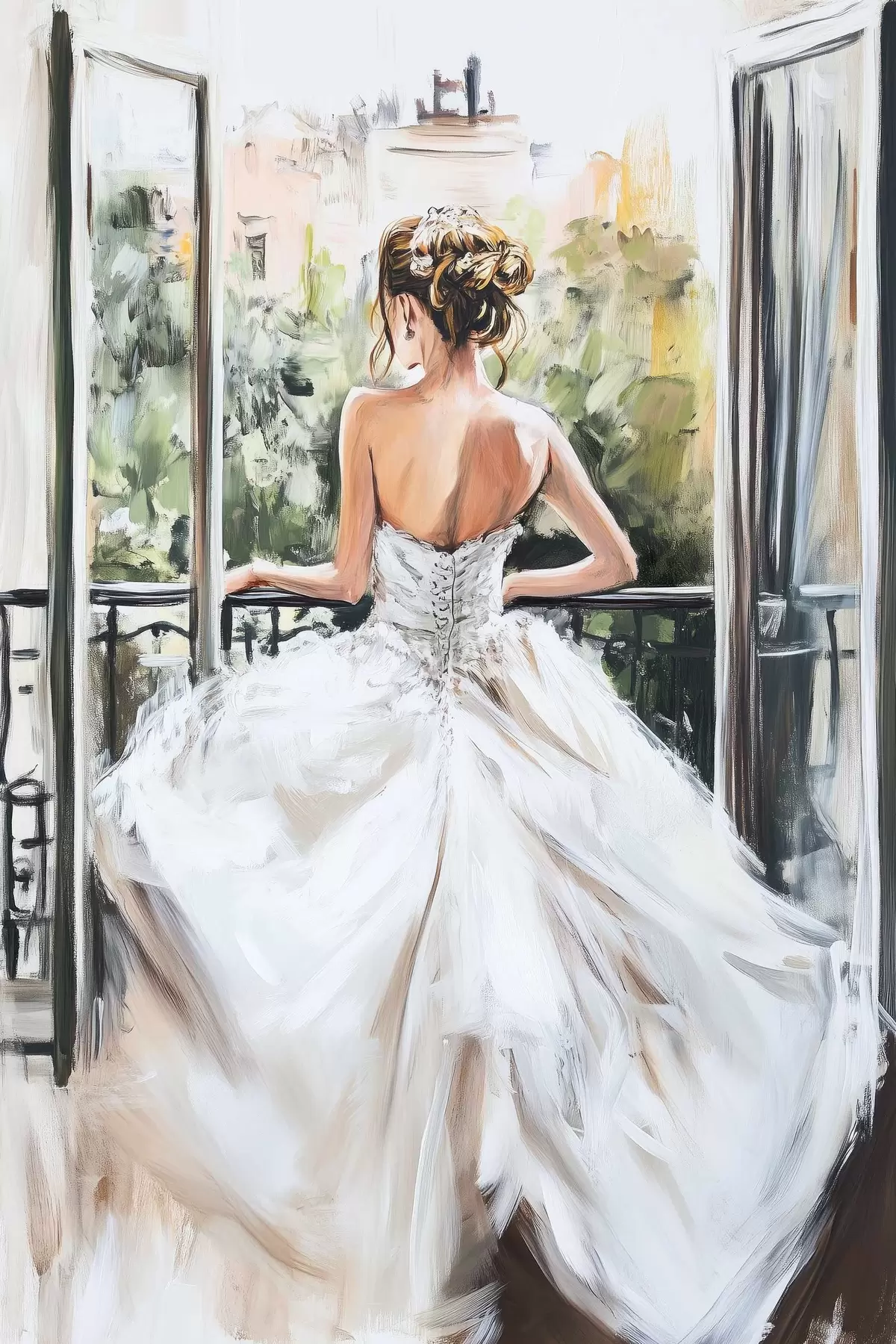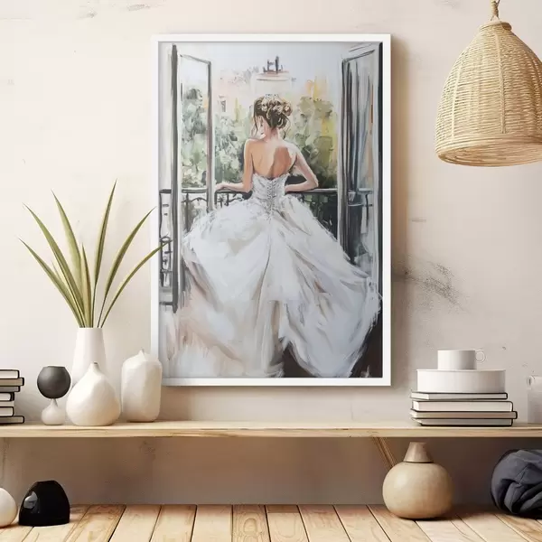 Poster Ragazza in abito bianco sul balcone Nr f44226