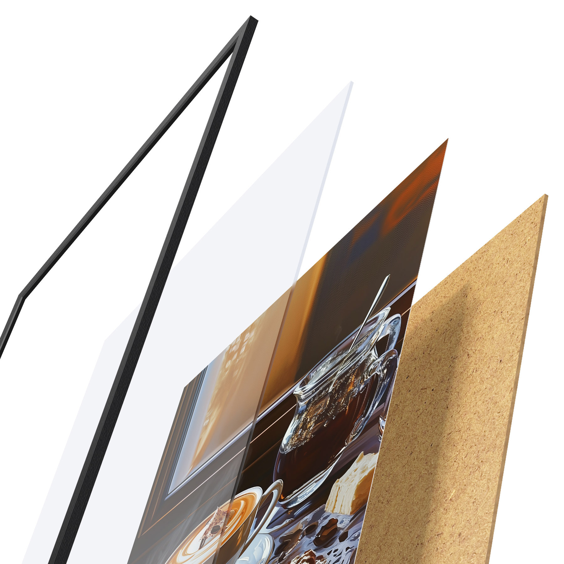 Il poster è composto da cornice, plexiglass, immagine stampata e supporto in truciolato. Il poster può essere immediatamente appeso alla parete grazie ai supporti sul retro.