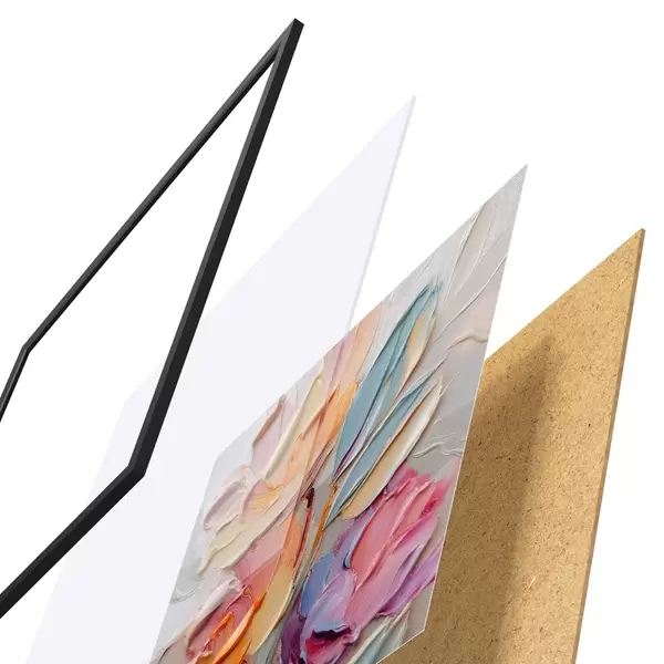 Il poster è composto da cornice, plexiglass, immagine stampata e supporto in truciolato. Il poster può essere immediatamente appeso alla parete grazie ai supporti sul retro.