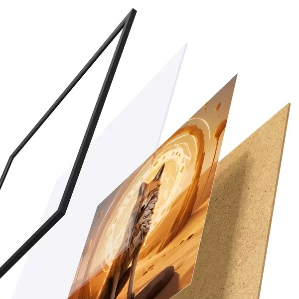 Il poster è composto da cornice, plexiglass, immagine stampata e supporto in truciolato. Il poster può essere immediatamente appeso alla parete grazie ai supporti sul retro.
