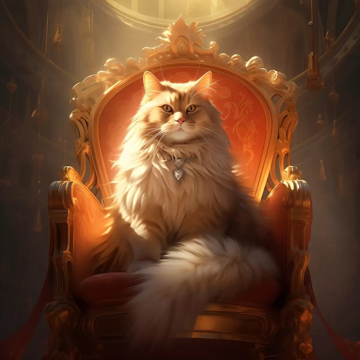 Poster Gatto regale con occhi d'ambra su un trono tra i raggi della gloria in stile barocco Nr f44250