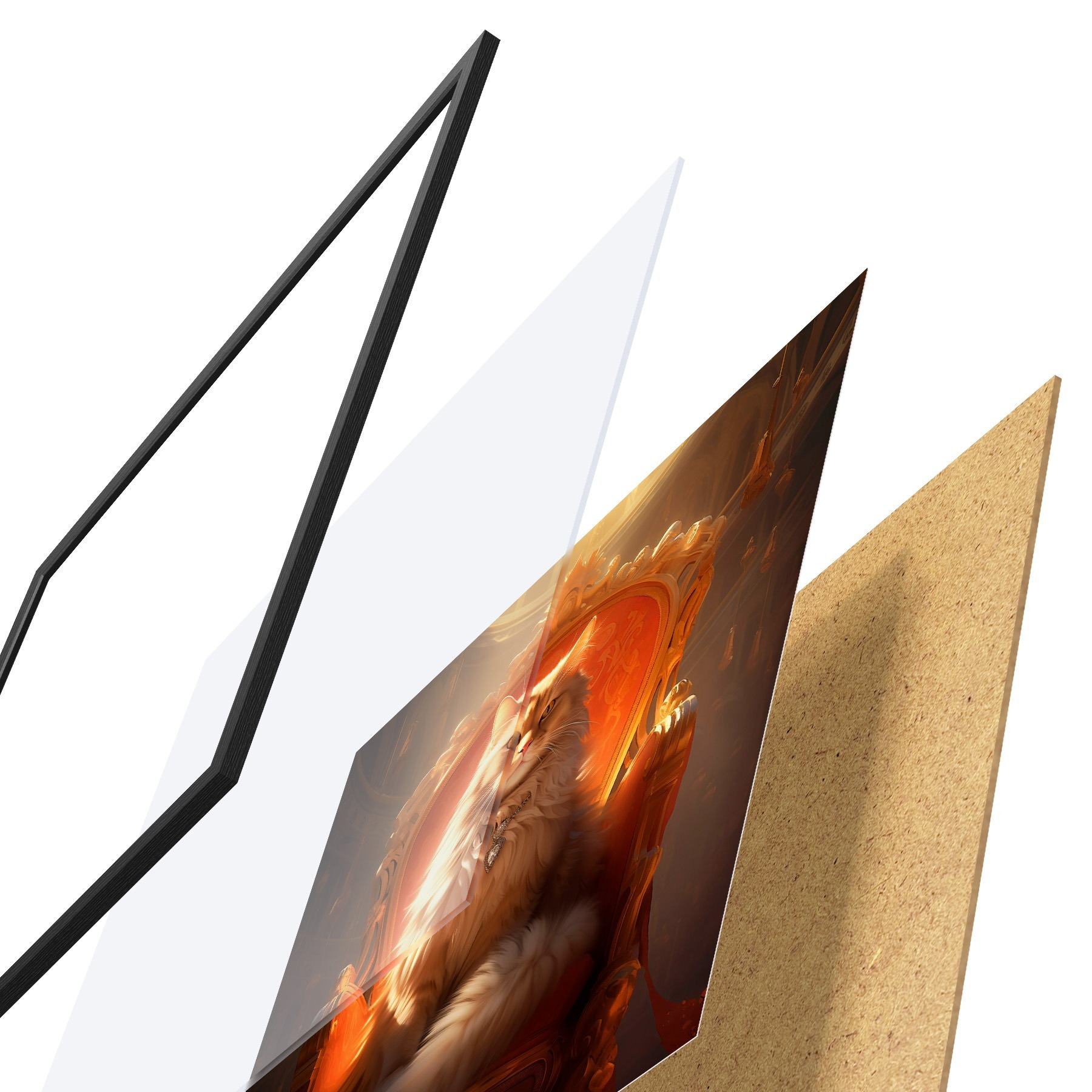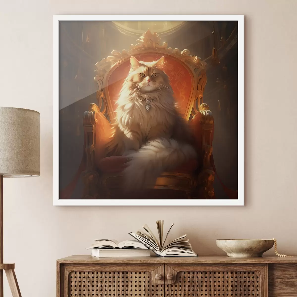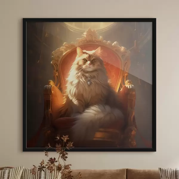 Poster Gatto regale con occhi d'ambra su un trono tra i raggi della gloria in stile barocco f44250