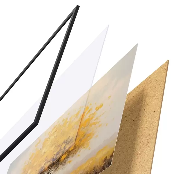 Il poster è composto da cornice, plexiglass, immagine stampata e supporto in truciolato. Il poster può essere immediatamente appeso alla parete grazie ai supporti sul retro.