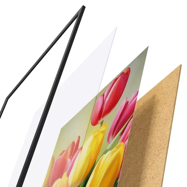 Il poster è composto da cornice, plexiglass, immagine stampata e supporto in truciolato. Il poster può essere immediatamente appeso alla parete grazie ai supporti sul retro.