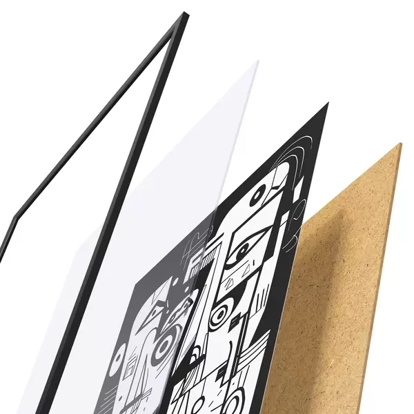 Il poster è composto da cornice, plexiglass, immagine stampata e supporto in truciolato. Il poster può essere immediatamente appeso alla parete grazie ai supporti sul retro.