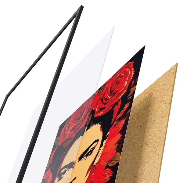 Il poster è composto da cornice, plexiglass, immagine stampata e supporto in truciolato. Il poster può essere immediatamente appeso alla parete grazie ai supporti sul retro.