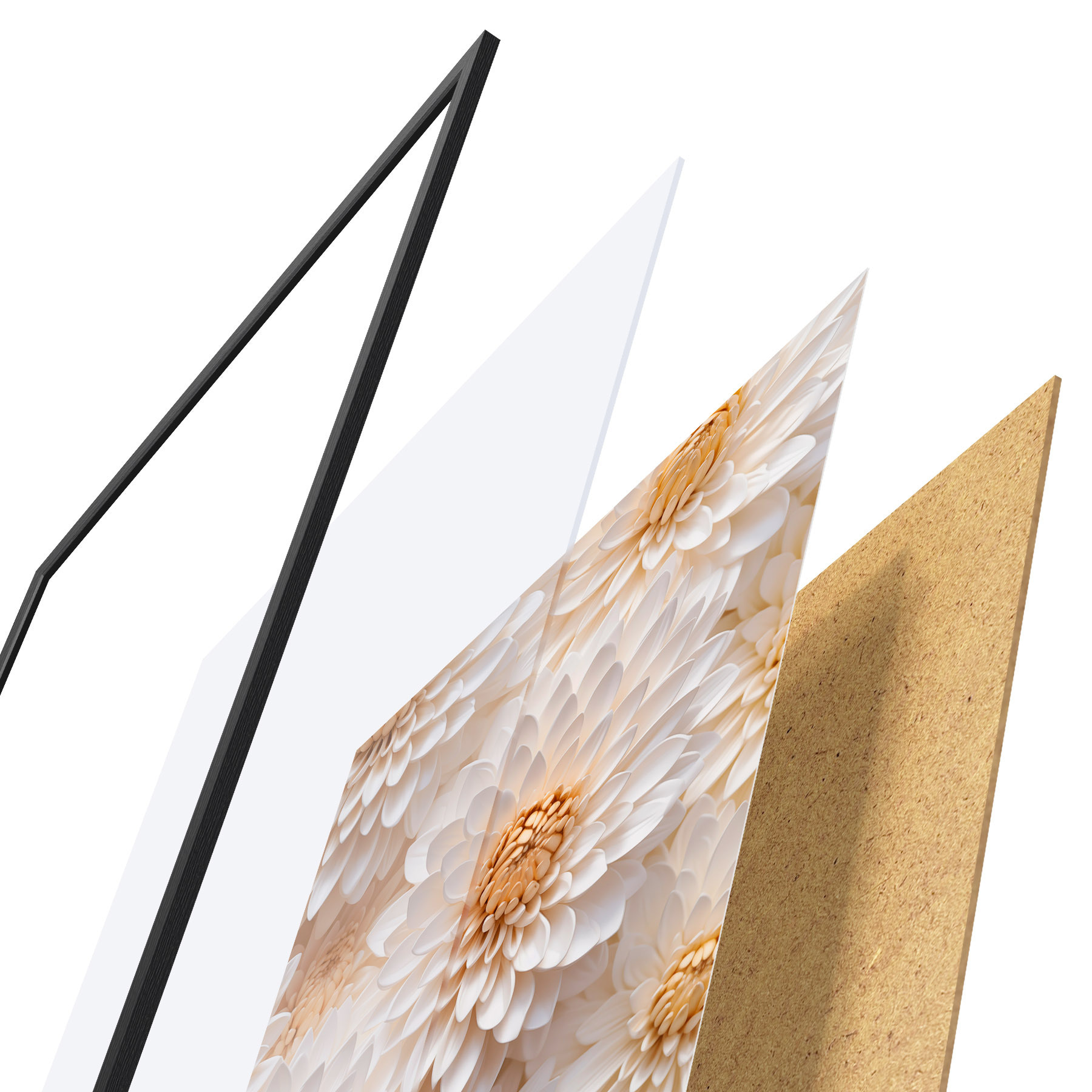 Il poster è composto da cornice, plexiglass, immagine stampata e supporto in truciolato. Il poster può essere immediatamente appeso alla parete grazie ai supporti sul retro.
