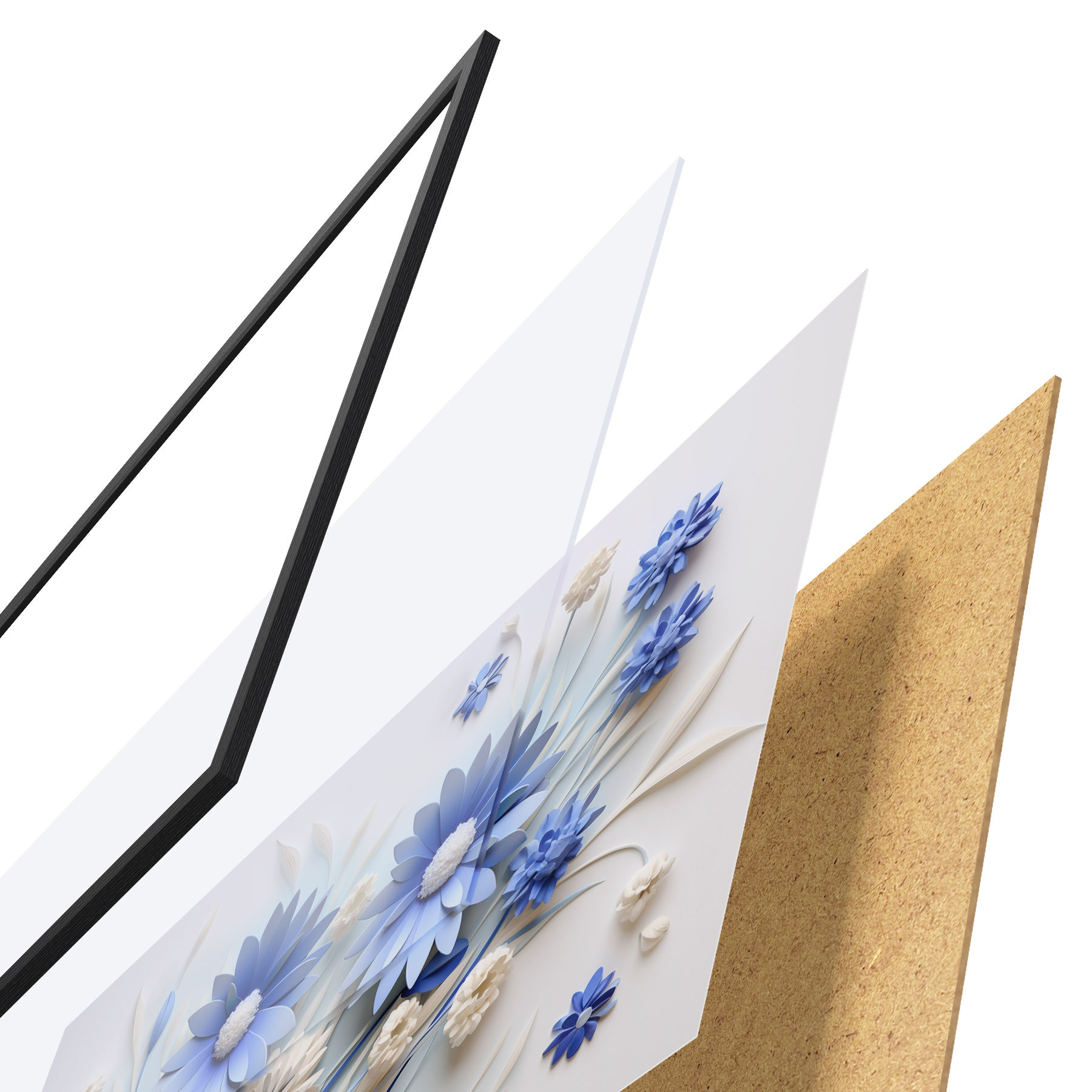 Il poster è composto da cornice, plexiglass, immagine stampata e supporto in truciolato. Il poster può essere immediatamente appeso alla parete grazie ai supporti sul retro.