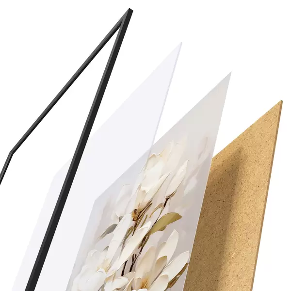 Il poster è composto da cornice, plexiglass, immagine stampata e supporto in truciolato. Il poster può essere immediatamente appeso alla parete grazie ai supporti sul retro.