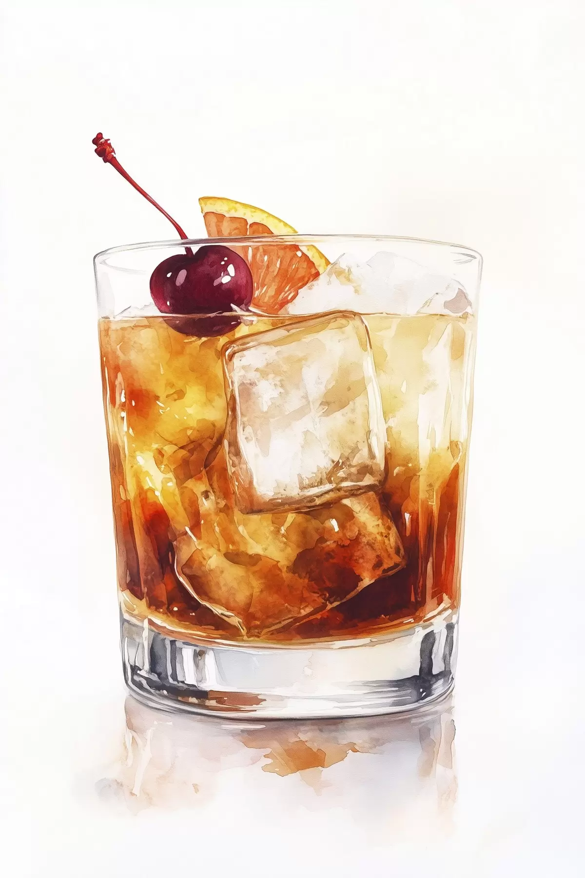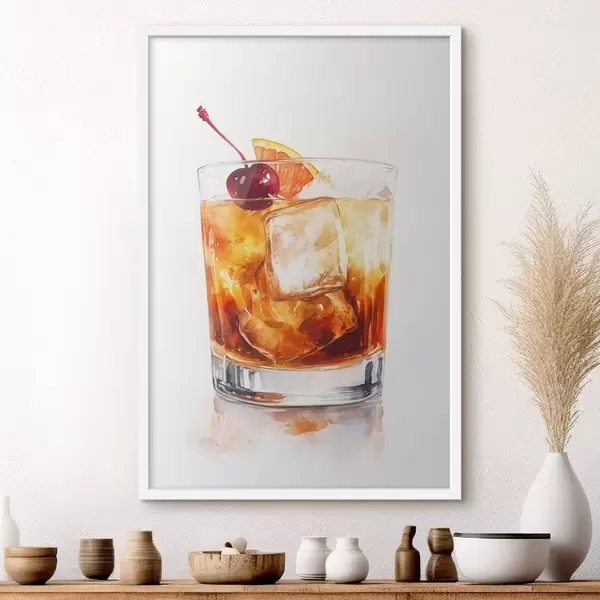 Poster Cocktail all'arancia con ghiaccio e ciliegia, stile acquerello Nr f44303