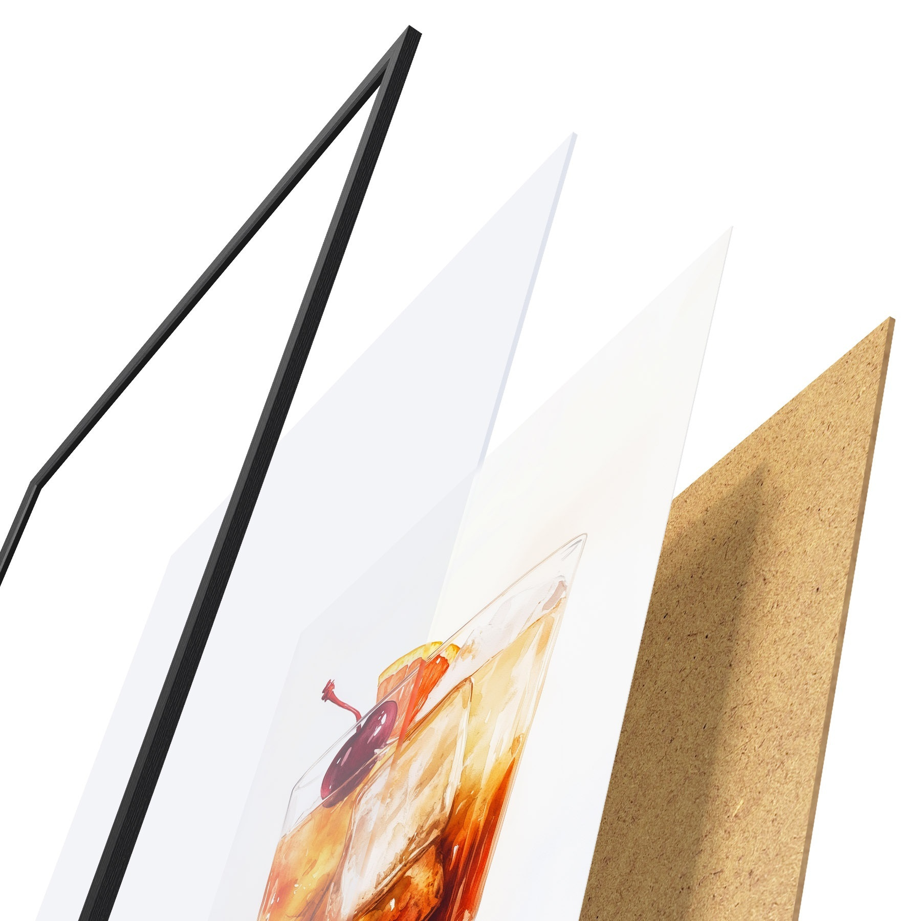 Poster Cocktail all'arancia con ghiaccio e ciliegia, stile acquerello f44303