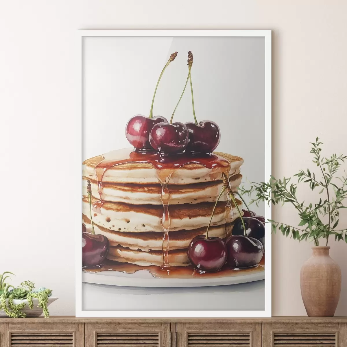 Poster Deliziosi pancake con ciliegie e sciroppo, stile acquerello Nr f44305