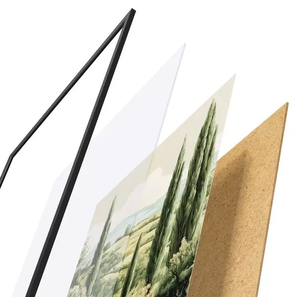 Il poster è composto da cornice, plexiglass, immagine stampata e supporto in truciolato. Il poster può essere immediatamente appeso alla parete grazie ai supporti sul retro.