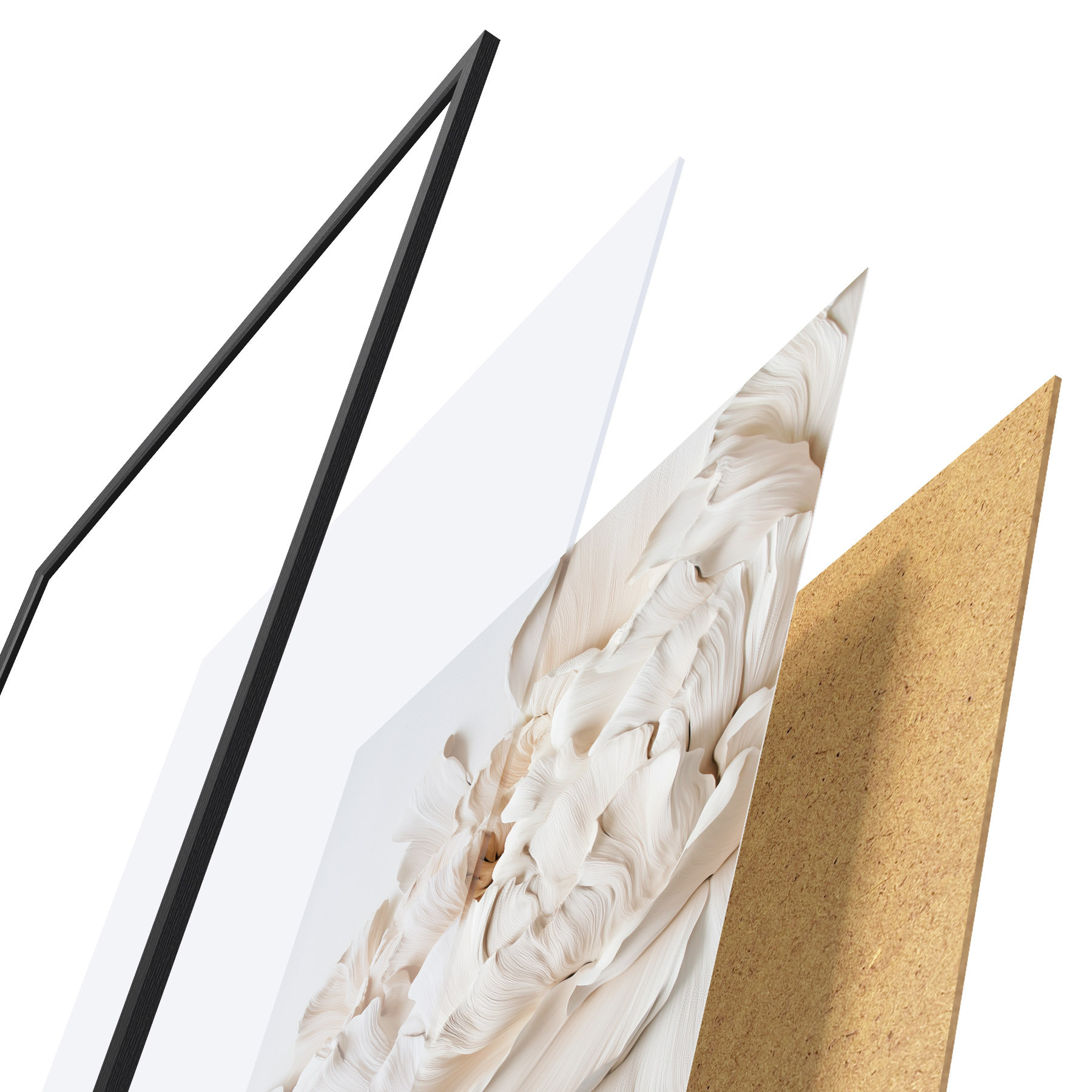Il poster è composto da cornice, plexiglass, immagine stampata e supporto in truciolato. Il poster può essere immediatamente appeso alla parete grazie ai supporti sul retro.