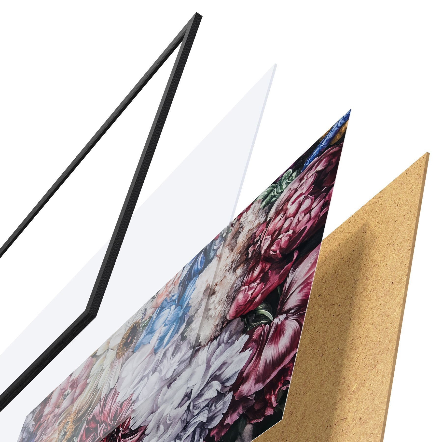 Il poster è composto da cornice, plexiglass, immagine stampata e supporto in truciolato. Il poster può essere immediatamente appeso alla parete grazie ai supporti sul retro.