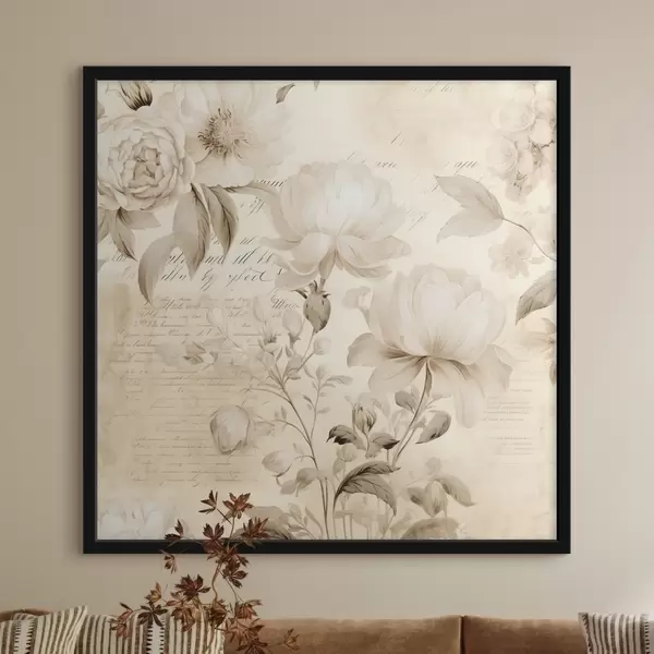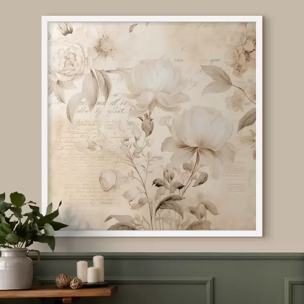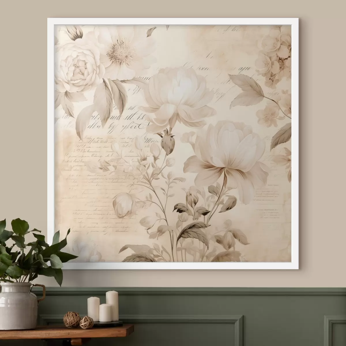 Poster Composizione vintage di fiori bianco crema Nr f44332