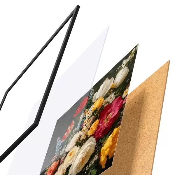 Il poster è composto da cornice, plexiglass, immagine stampata e supporto in truciolato. Il poster può essere immediatamente appeso alla parete grazie ai supporti sul retro.