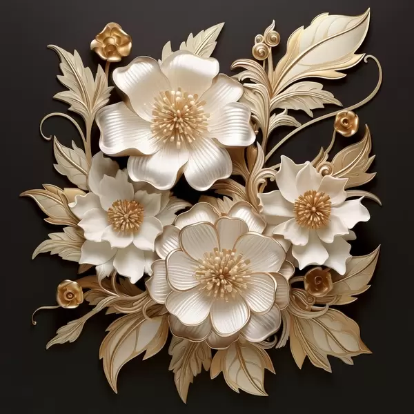 Poster Voluminosi fiori bianchi su sfondo nero Nr f44340
