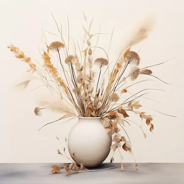 Poster Composizione di erbe e fiori secchi in un vaso bianco Nr f44348