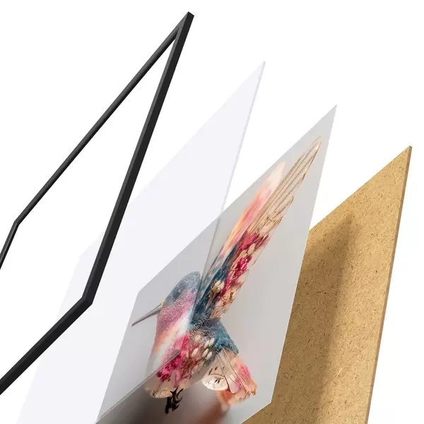 Il poster è composto da cornice, plexiglass, immagine stampata e supporto in truciolato. Il poster può essere immediatamente appeso alla parete grazie ai supporti sul retro.