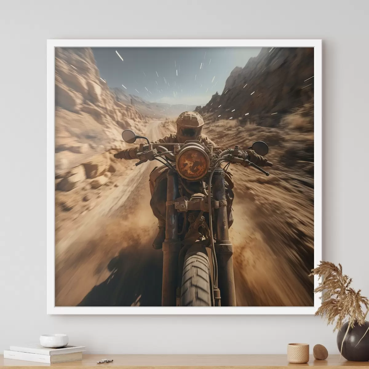 Poster Motociclista che sfreccia su una strada deserta Nr f44361