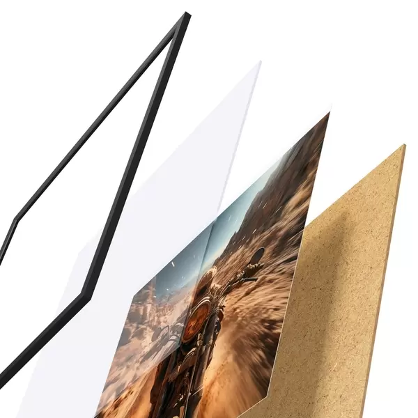 Il poster è composto da cornice, plexiglass, immagine stampata e supporto in truciolato. Il poster può essere immediatamente appeso alla parete grazie ai supporti sul retro.