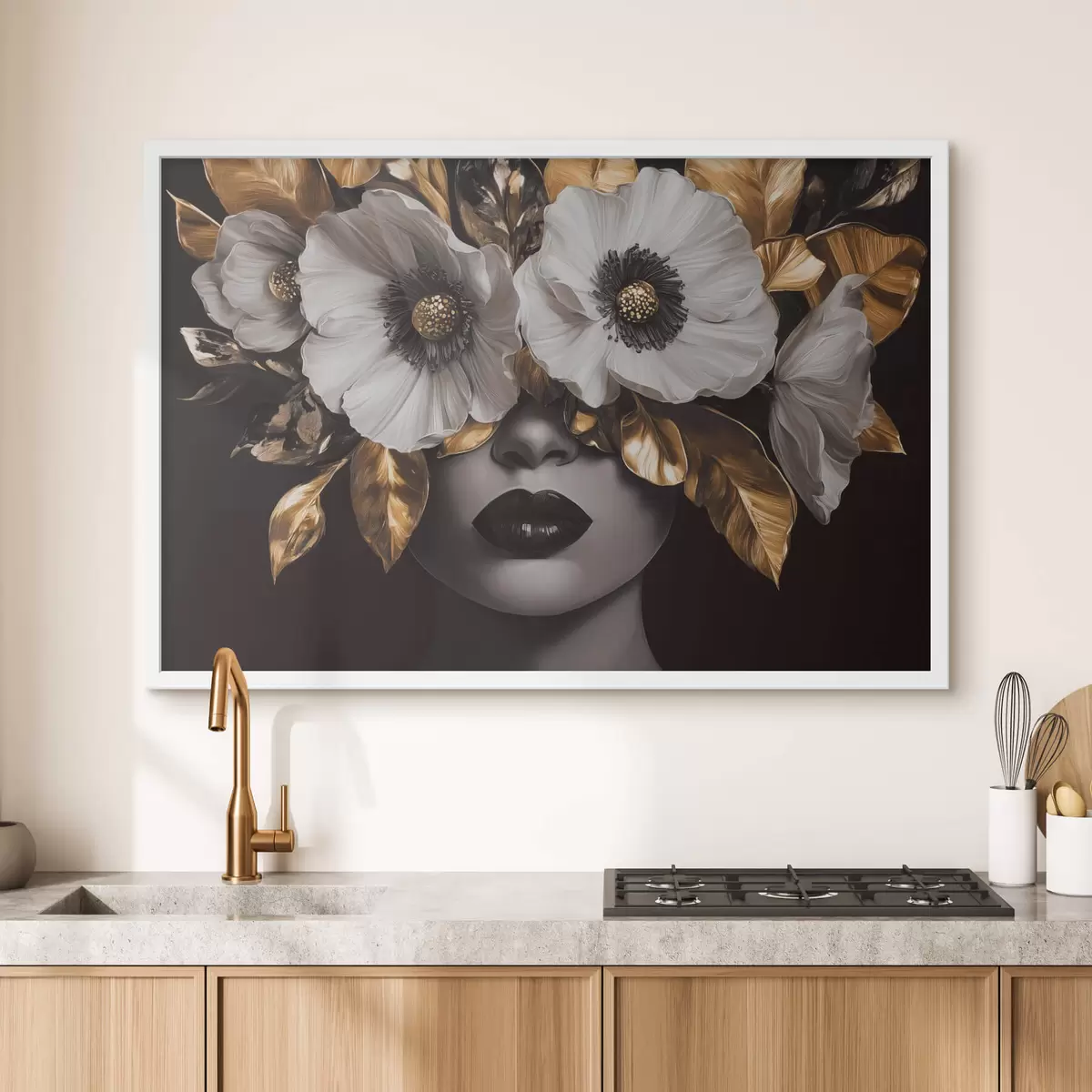 Poster Ritratto semi-astratto di donna con fiori f44365