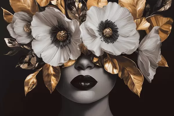 Poster Ritratto semi-astratto di donna con fiori f44365