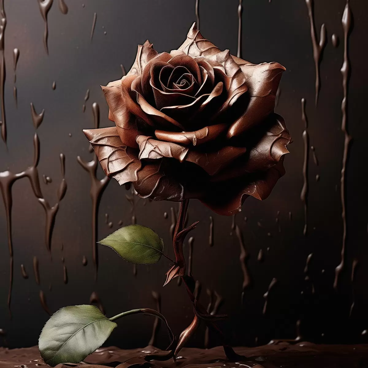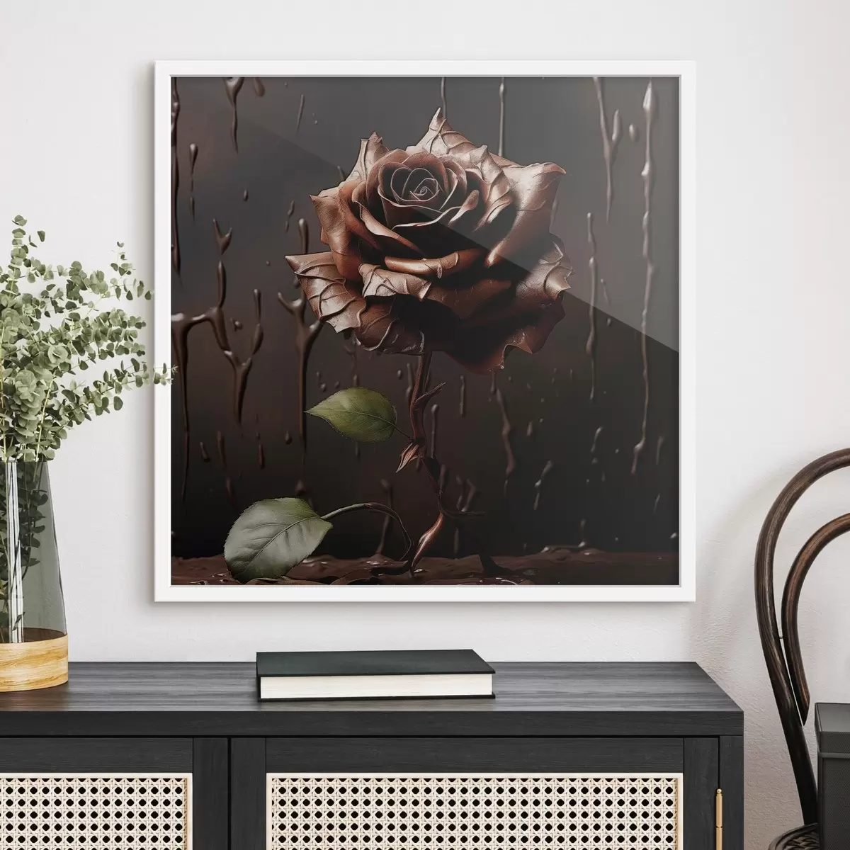 Poster Rosa marrone su sfondo scuro con schizzi di cioccolato Nr f44381