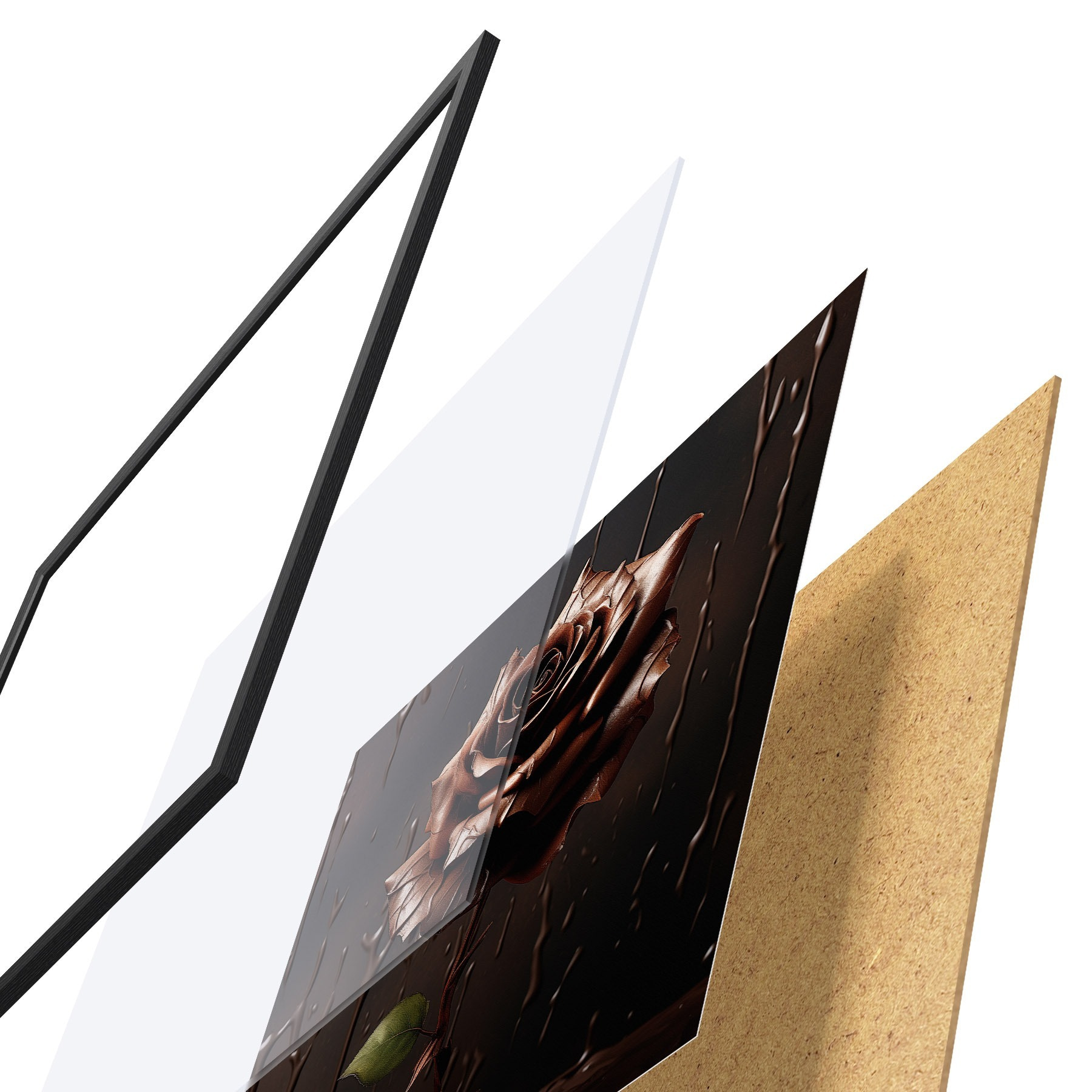 Il poster è composto da cornice, plexiglass, immagine stampata e supporto in truciolato. Il poster può essere immediatamente appeso alla parete grazie ai supporti sul retro.