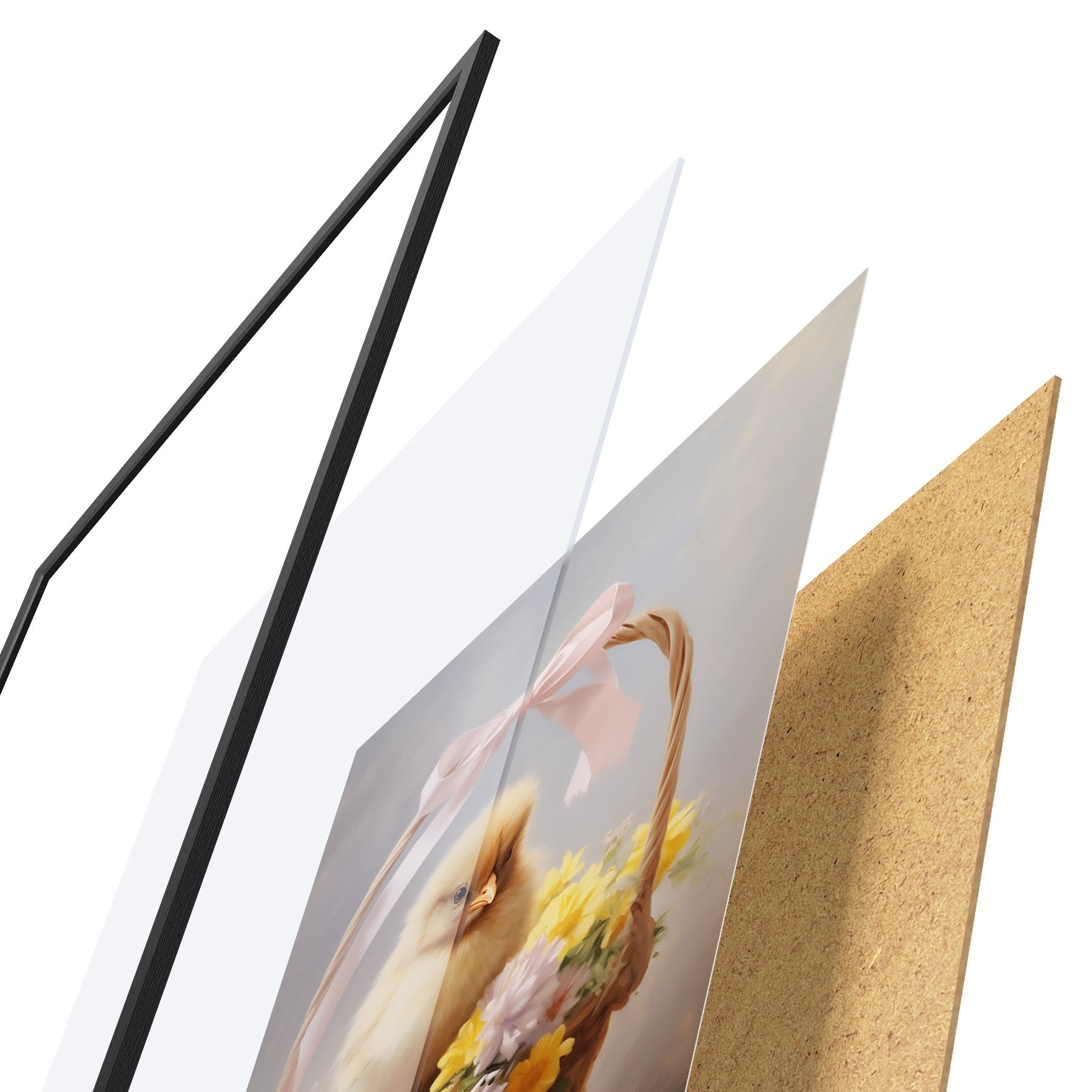 Il poster è composto da cornice, plexiglass, immagine stampata e supporto in truciolato. Il poster può essere immediatamente appeso alla parete grazie ai supporti sul retro.