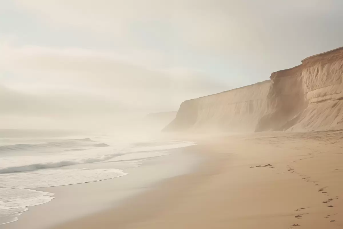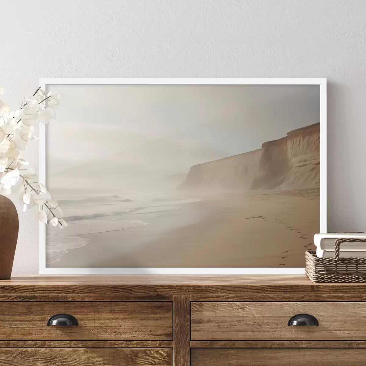 Poster Paesaggio di una spiaggia sabbiosa con scogliera in una limpida giornata di sole Nr f44391
