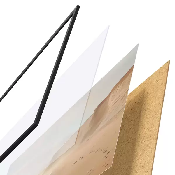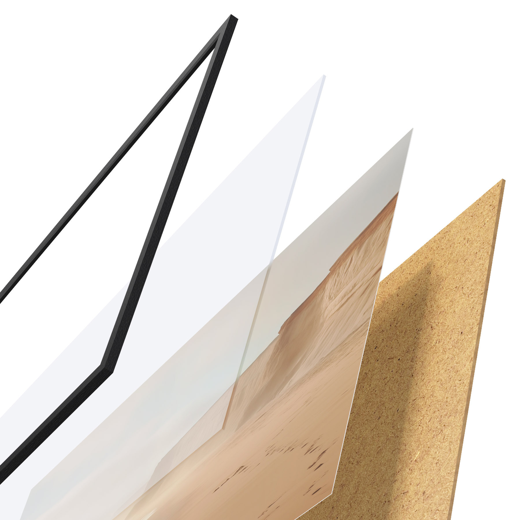 Il poster è composto da cornice, plexiglass, immagine stampata e supporto in truciolato. Il poster può essere immediatamente appeso alla parete grazie ai supporti sul retro.