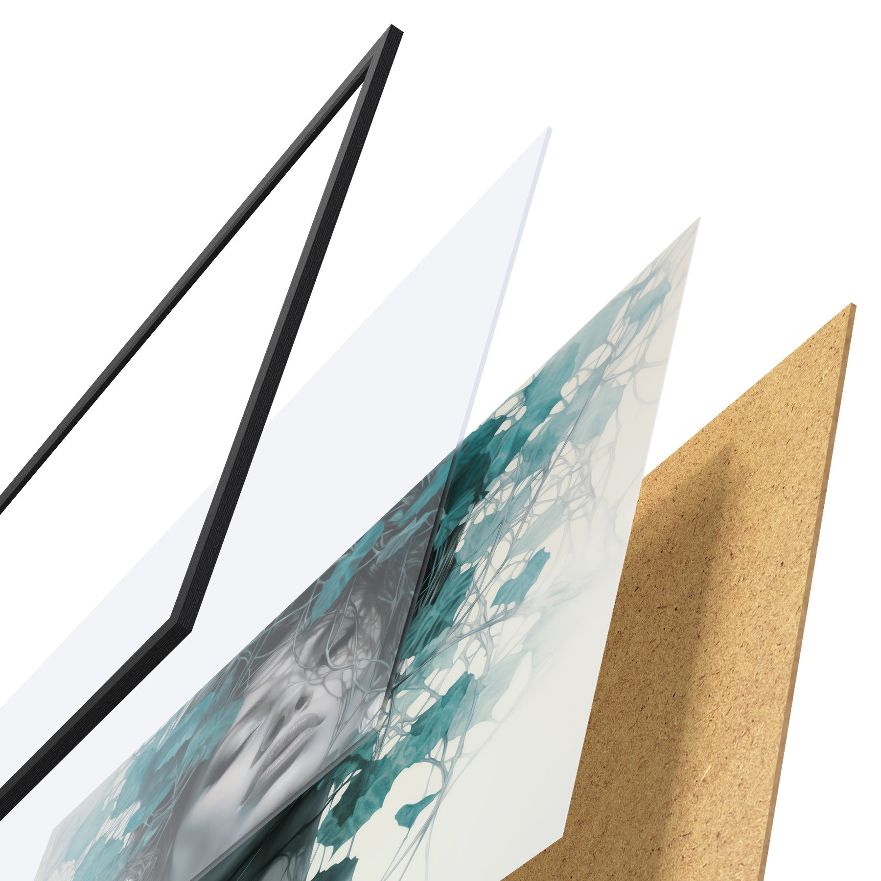 Il poster è composto da cornice, plexiglass, immagine stampata e supporto in truciolato. Il poster può essere immediatamente appeso alla parete grazie ai supporti sul retro.